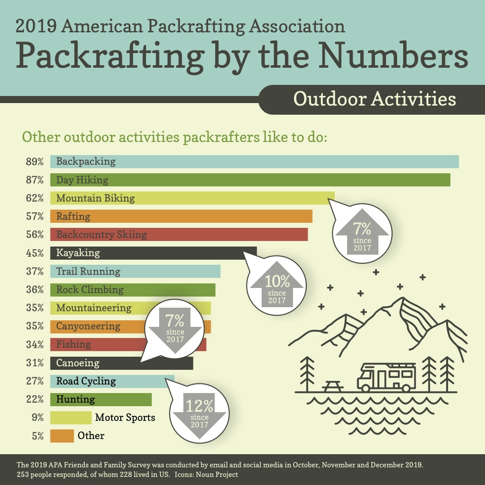 APA conducts a Members and Friends Survey every two years, gathering information about demographics, interests, experience and safety training across the packrafting community. Not only does this help us plan and prioritize APA projects, but it also provides a valuable glimpse into who packrafters are and trends in packrafting.